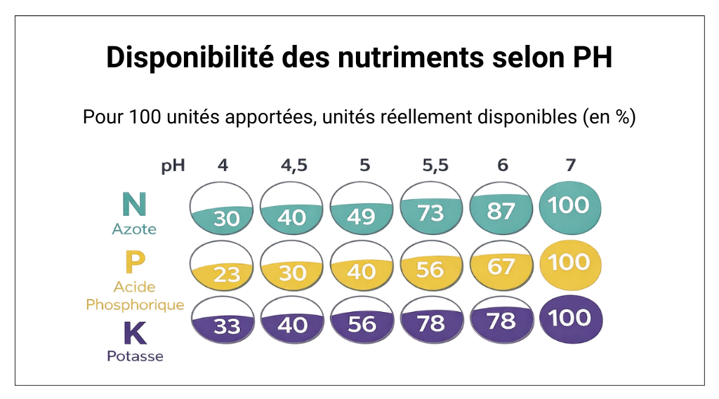 Concrètement : PH équilibré = meilleure disponibilité des nutriments pour les plantes